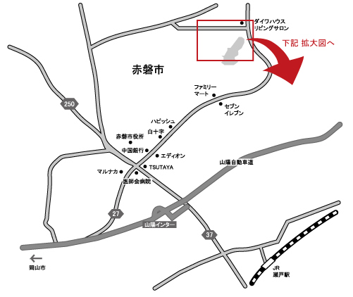 梶原内科を行き過ぎた場合、ピンクの家まで行き、左折します。